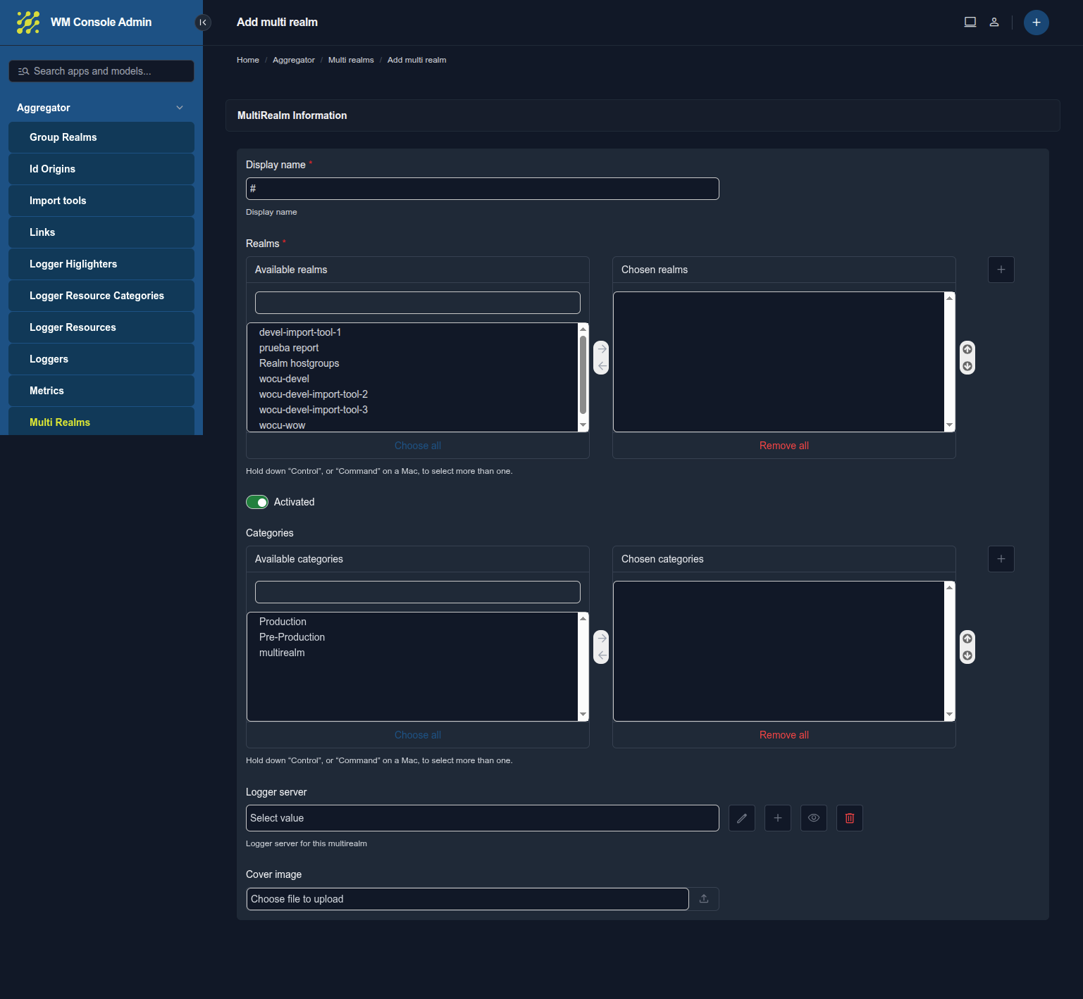 Mandatory field where to add an identification term of the Multi-Realm, with which it will be displayed in the WOCU-Monitoring interface. The assigned identifier must be differentiated from the rest of the Realms.
