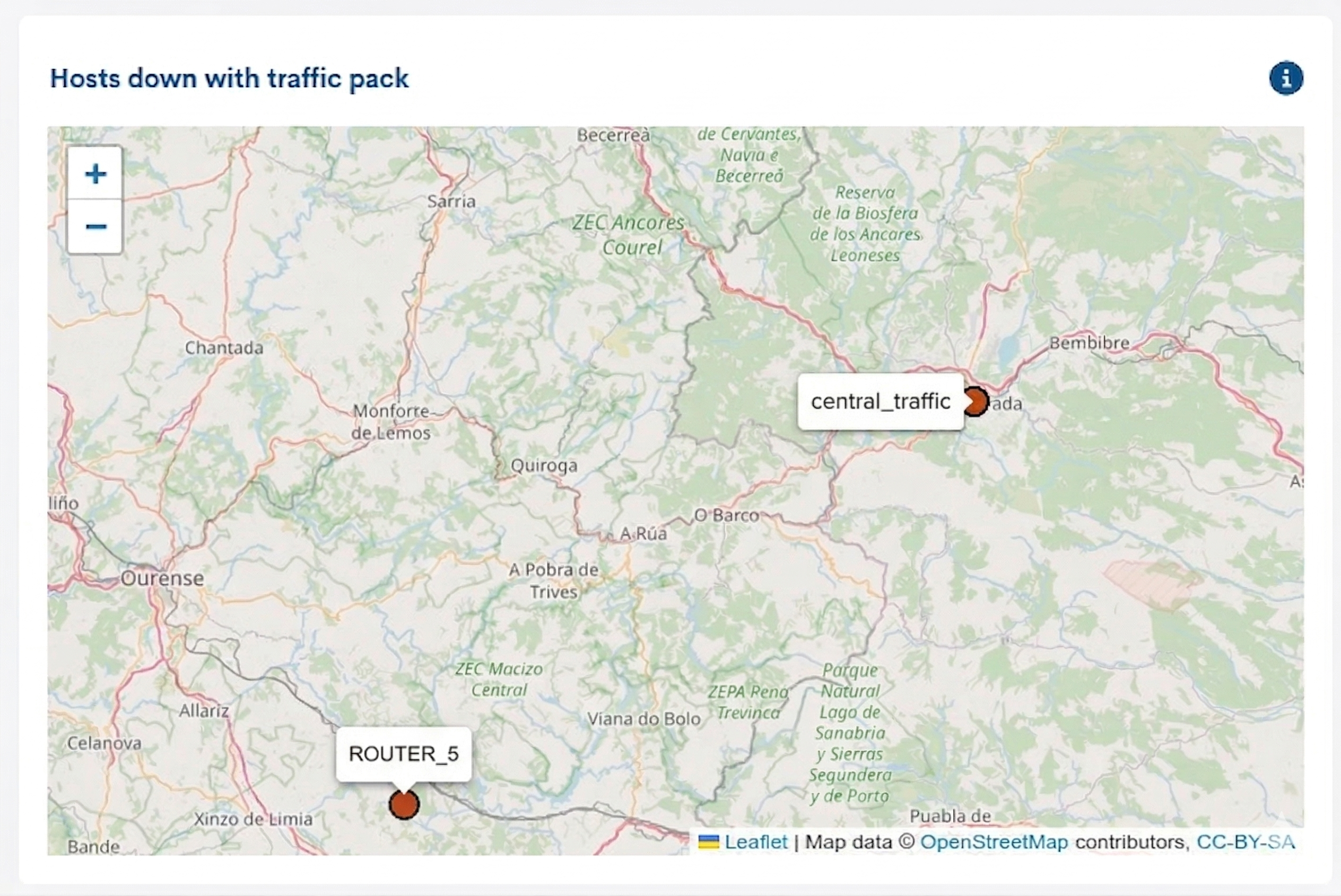 For example, it is possible to configure a geomap that displays hosts in a non-operational (DOWN) state that have the Networkdevice-traffic monitoring pack assigned.